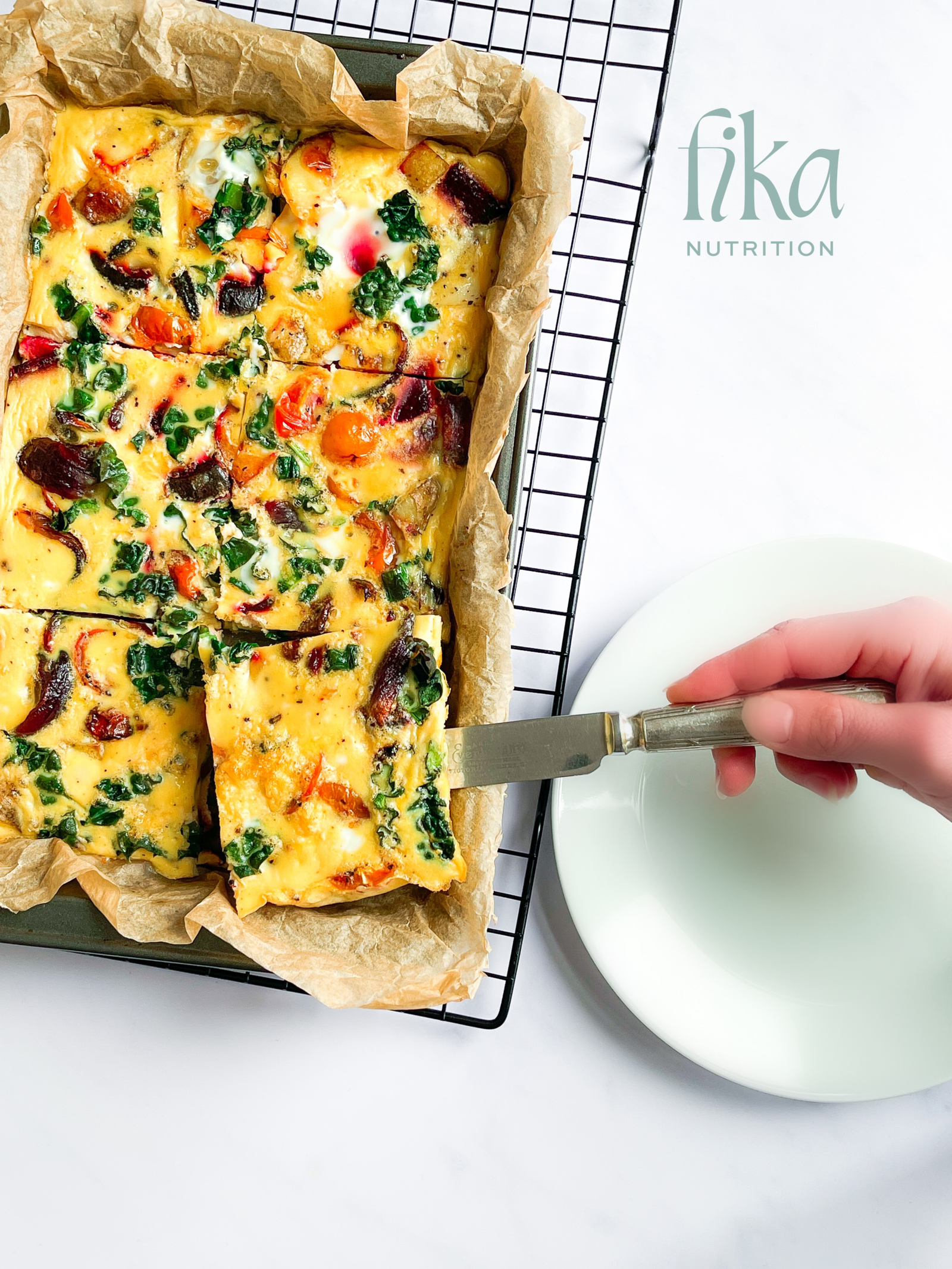 - Remove from the oven, pour your egg mix on top and return to the oven for a further 15 mins or until your egg is just cooked